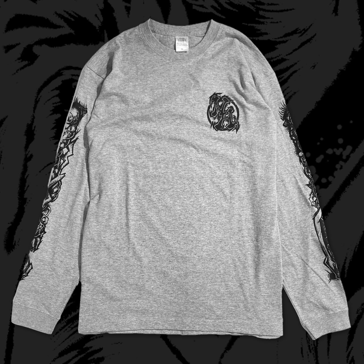 ダークテイストのグラフィック「Abyss」を両袖に大きくプリント。フロントにはワンポイント。
