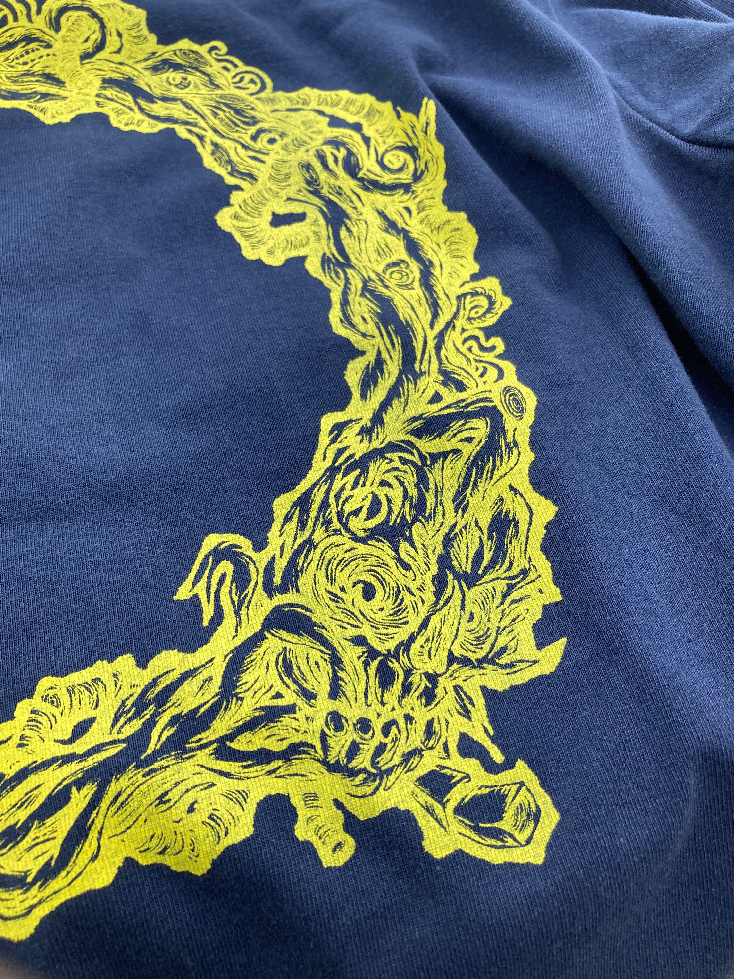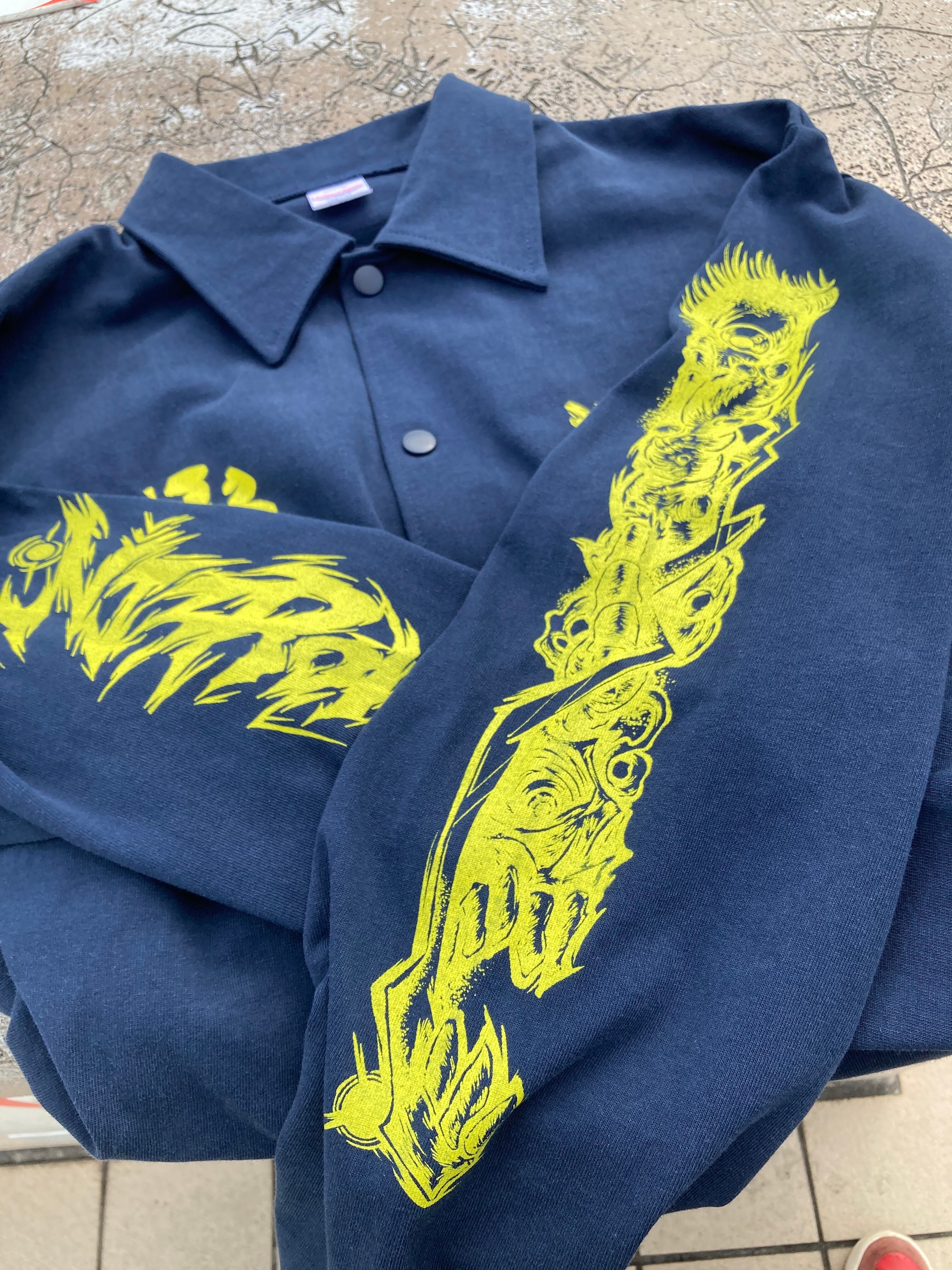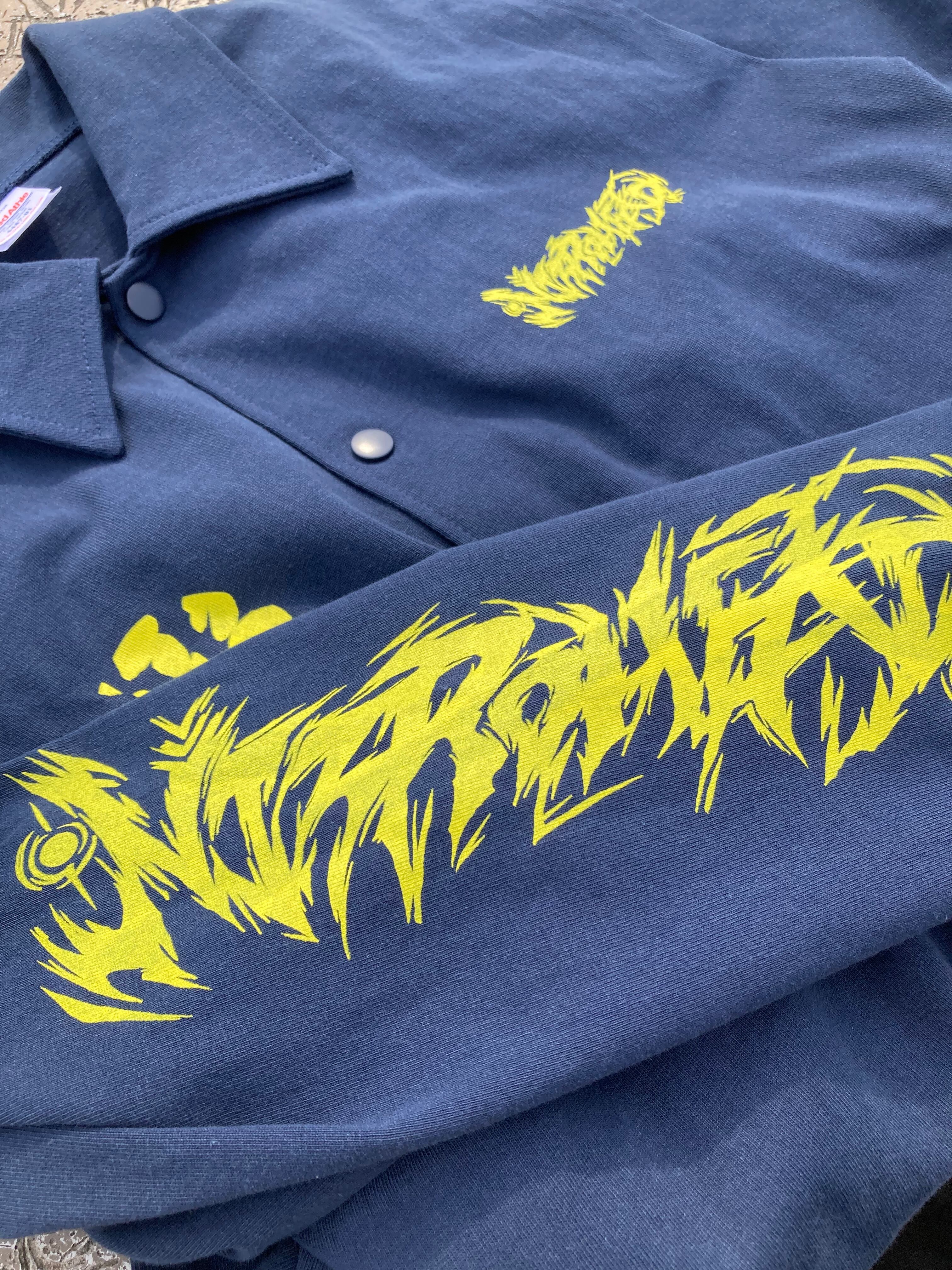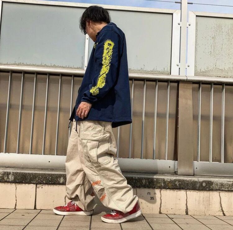 フロント左右、両袖、バックにそれぞれブランドを象徴するロゴをバチかました全方位全放射系ジャケット。手刷りならではのアプローチ。袖にもドーン!これが一平チャーーーン!