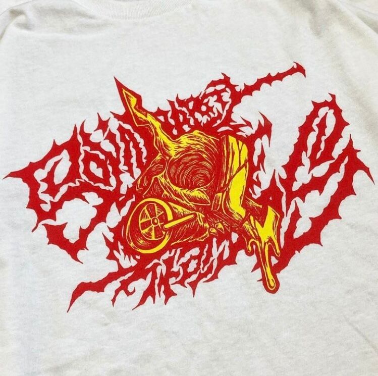 ハードコアグラフィック「So/So」をフロントに、袖にはブランドの攻撃性を象徴するWeathering Logoをプリント。