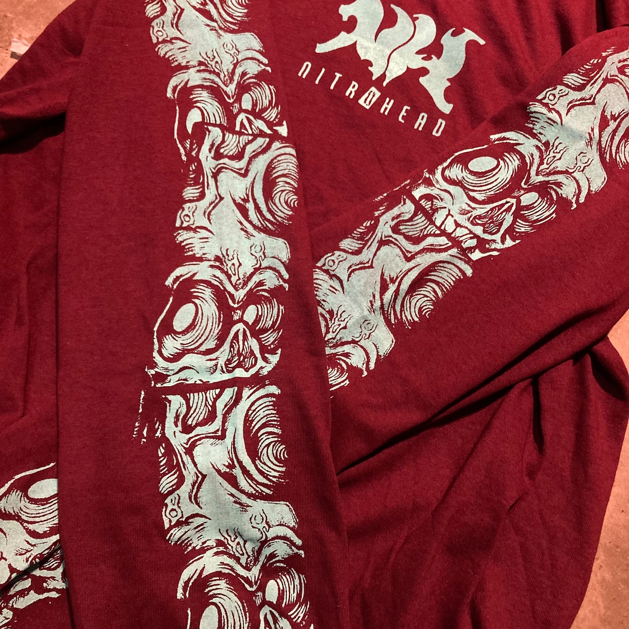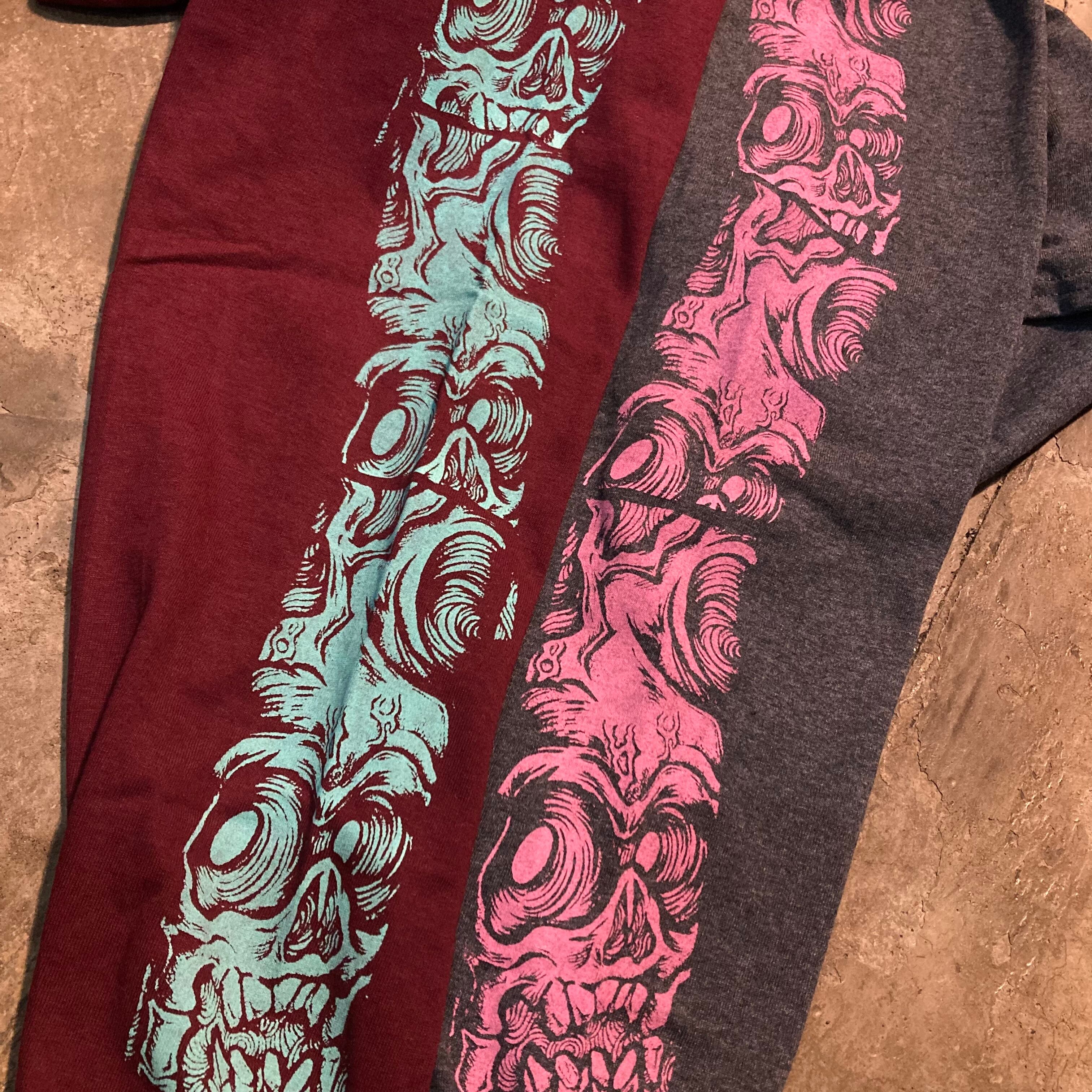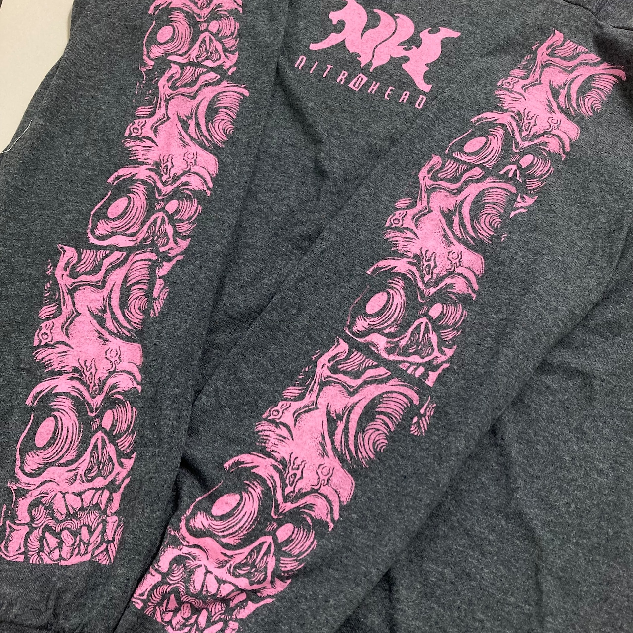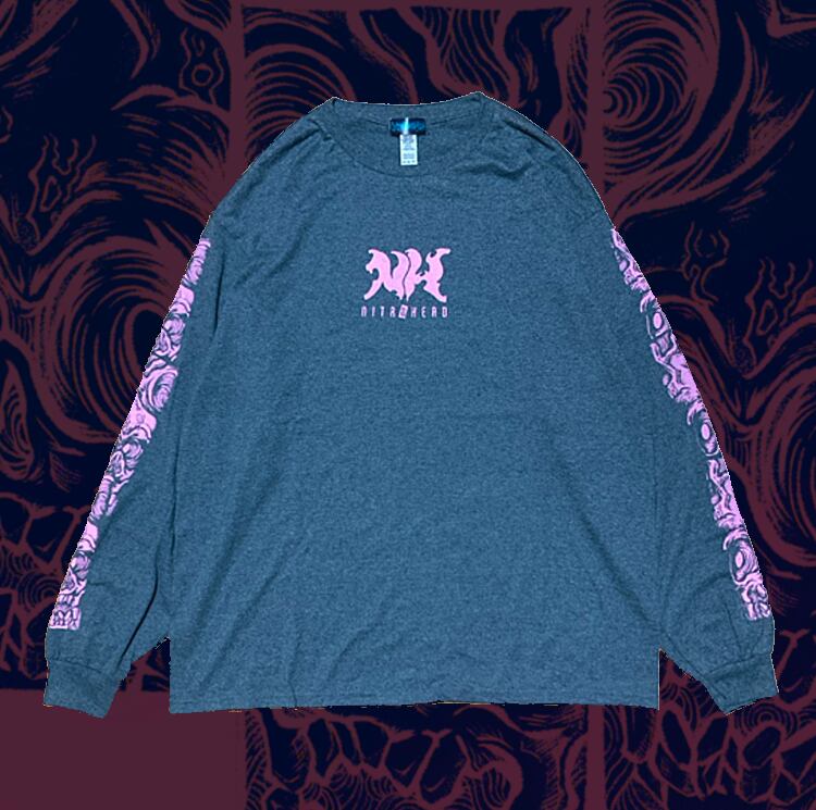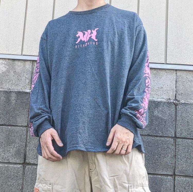 ハードコアグラフィック"酷烈"を両袖にプリント。手刷りならではのチャレンジングなアプローチが光るロンT。